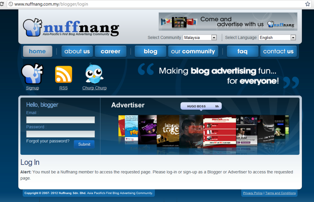 旧的Nuffnang网页设计。The old Nuffnang website look.